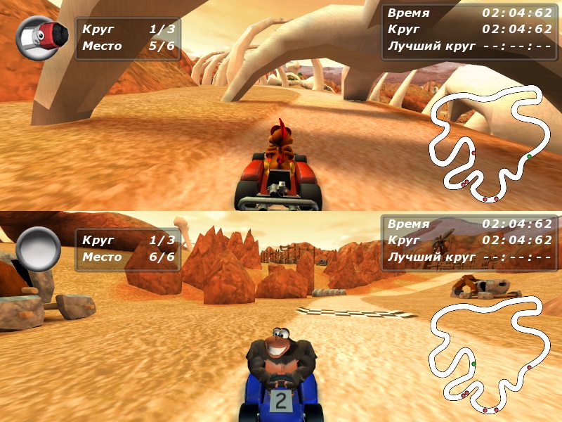 В раздаче присутствуют все 3 части игры: Moorhuhn Kart 1, Moorhuhn Kart 2, Moorhuhn Kart 3.