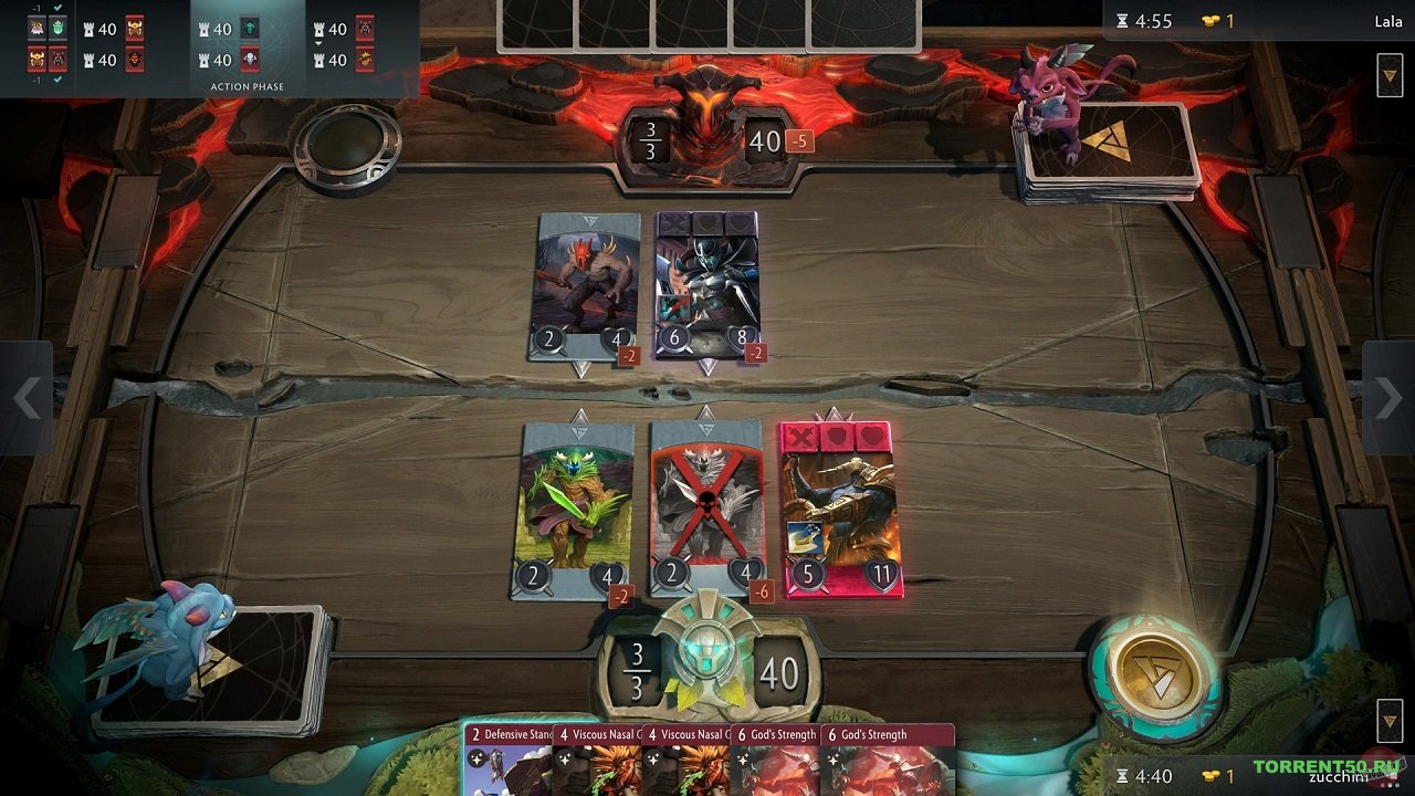 Если вы знакомы с такой известной игрой, как "Dota 2", то тогда сюжет для вас будет понятен. Как и в вышеуказанной игре, главная задача персонажей свергнуть противников с трона, путем применения различных уловок, да и просто выбора грамотного персонажа, которые представлены определенными навыками и силами. Возможно такое, что игрок может выиграть даже, если не будет применять магию вовсе, а просто применит силу к противнику. Однако, бывают такие миссии, в которых без магических сил не обойтись, что также важно рассчитывать. Главное отличие заключается в том, что тут существуют карточки разных цветов, начиная от красного, заканчивая синим. Далее стоит упомянуть деталь, почему карточки маркируются разными цветами. К примеру, синие карты - это персонажи, которые обладают магическими способностями, но важно всегда смотреть и на другие параметры персонажа. В свою очередь, красные карточки представляют персонажей, которые очень развиты физически, хотя совершенно не обладают магическими силами. Для того, чтобы выиграть, нужно будет разрушить не только трон, но и рядом расположенные башни. После чего идет сражение карт, сравнение характеристик и сил персонажей. Помимо того, что все персонажи имеют определенную маркировку, чтобы их было легче отличать, как уже было сказано ранее, существуют и другие параметры, к примеру: урон, здоровье и броня. Разумеется, что параметры персонажей могут повышаться за счет каких либо предметов, либо примененных баллов. Для того, чтобы игрок не запутался, были созданы окна информации, где можно найти также и подсказки. Таким образом, игра Artifact действительно стоит того, чтобы ее скачали торрент, так как несмотря на некоторую схожесть с именитой игрой, в ней есть свои особенности и фишки, которую отделяют ее от "Dota 2". В том числе, естественность и декорации также вносят свою пользу в игровой режим.