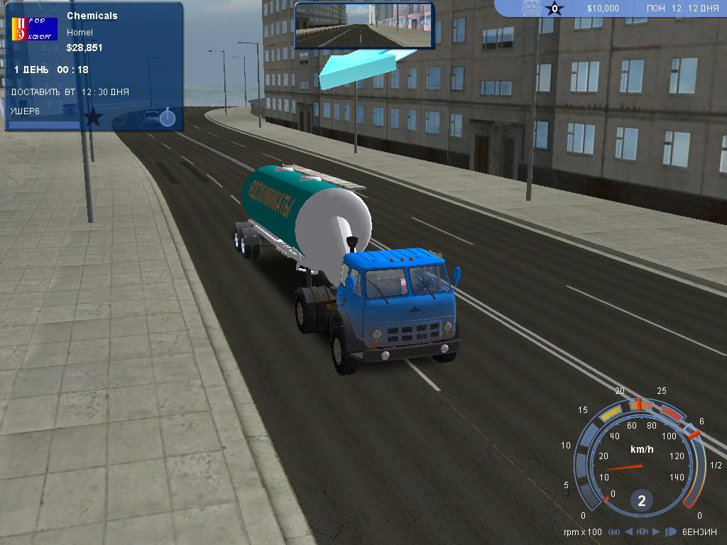 Сюжет данной адвенчуры достаточно прост: вы колесите по миру и рассматриваете пейзажи Северной Америки, Канады, Мексики. Вам предстоит перевозить грузы разной сложности и количества от одной точки к другой. Причем делать это придется постоянно. Только приехали с доставкой на пункт выдачи, сразу же мчитесь на склад и берете новый груз, везёте в другую точку и получаете за это деньги. Главное, чтобы в дороге ничего плохого не случилось, иначе придется платить штраф из своего кармана. А причин может быть много. Например, вы можете уснуть за рулем из-за недосыпа. Такое тоже часто бывает, особенно когда вы опаздываете на сдачу заказа. И за опоздания с вас тоже взыскиваются штрафы. Так что, в конечном итоге, вы можете и ничего не получить. Плюс ко всему, еще необходимо постоянно заправлять бензобак и ремонтировать свой 18-колесный грузовик. Апгрейды тоже присутствуют. Улучшайте машину, чтобы она ехала еще быстрее, могла вмещать больше бензина, а также просто займитесь стайлингом и сделайте ее оригинальной, которая будет выделяться на общем фоне. Но помните, что сразу покупать тачку необязательно. Можно просто поработать на рабочей машине, но в таком случае вы будете выполнять заказы исключительно работодателя, а не те, которые выбрали вы сами. И это создает небольшие проблемы, так как подобные заказы обычно не совсем оптимальные по времени, месту и грузу. А ведь груз бывает абсолютно разный. Есть стекло, фарфор и прочие предметы, которые очень легко бьются. А есть древесина, бензин (с ним тоже нужно быть крайне осторожным), предметы быта, которые, по большому счету, можно "тягать" и не бояться, что они испортятся или сломаются. Только это не значит, что вы определенно можете таранить всех подряд и "встречать" любые заборы. Скачивать торрент 18 Стальных колес: Пыль дорог следует всем, кто желает насладиться прекрасными пейзажами США.