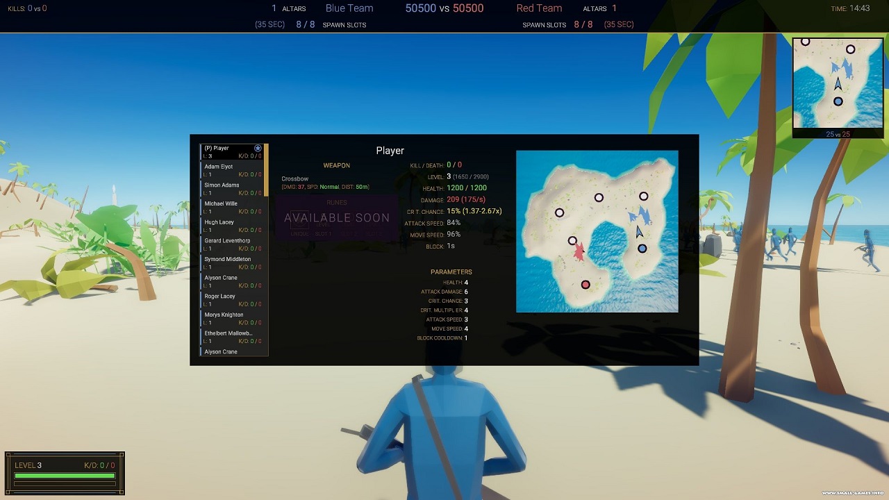 Battle Motion, это симулятор средневекового сражения, выполненный в стиле Totally Accurate Battle Simulator. Игроку доступен выбор персонажа и улучшение его характеристик. На поле боя необходимо управлять целой командой воинов, которые будут сражаться до последней капли крови, а ее в игре предостаточно, ради выполнения поставленной цели. Пользователю может полностью взять под контроль одного из персонажей игры. Доступен выбор оружия. Каждый предмет обладает своими уникальными особенностями. От выбора зависит стиль ведения боя и преимущество определенного персонажа. Оригинальность сражений гарантирована тем, что отряды подбираются случайным образом. Встретить на поле боя двух героев в одной команде больше одного раза практически невозможно. Каждый персонаж в игре получил индивидуальную шкалу здоровья, по которой можно увидеть, как долго он может оставаться в строю. Искусственный интеллект игры создаёт различные сценарии развития событий, что позволяет разнообразить времяпрепровождение. Чтобы оценить преимущества новой версии игры, достаточно скачать Battle Motion через торрент и установить программу на свой компьютер. Игра, несомненно, понравится любителям командных сражений.