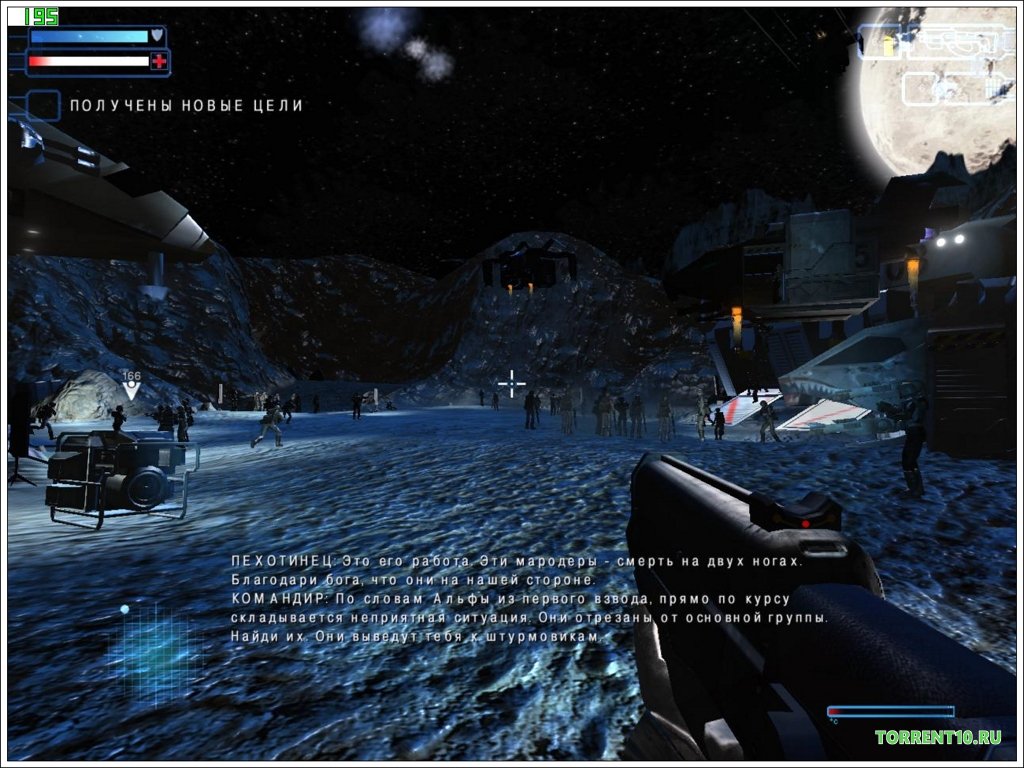 «Звездный Десант» представляет собой невероятный шутер от первого лица с линейной сюжетной линией. Здесь у геймера имеется набор вооружения, боезапас и показателей здоровья и «щита». Щит является особенностью экзоскафандра, и защищает геймера от любых повреждений. Как только весь запас щита иссякает, то любые повреждения уменьшают показатель здоровья геймера. Для того, чтобы восстановить запас здоровья, нужно подбирать аптечки. Щит экзоскелета может восстановиться самостоятельно в том случае, если геймер некоторые время не получает повреждения.