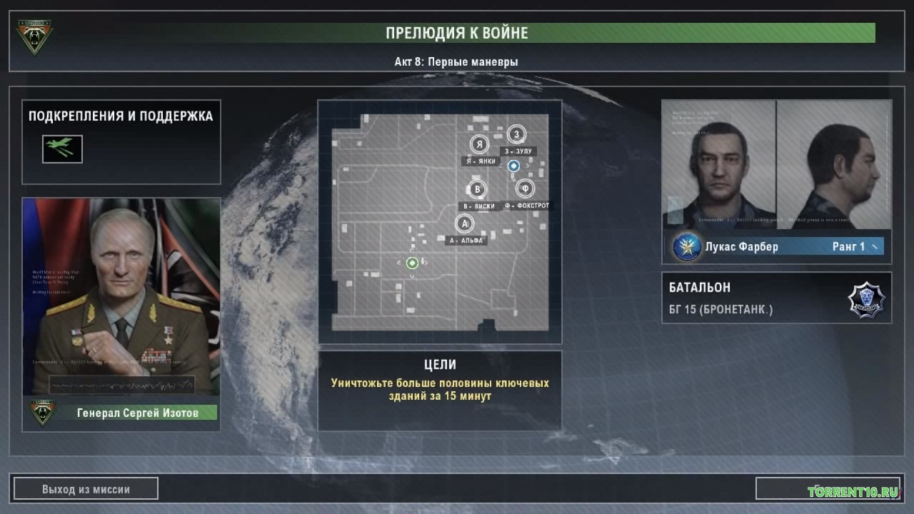 Всего в игре насчитывается 9 полноценных миссий, разделенных еще на кучу ответвлений и дополнительных заданий. К тому же, после успешного прохождения всех девяти, вам предложат пройти еще две (смотря какую страну для продолжения вы выберите). Первая миссия начинается с того, что необходимо устранить террористов в Хорватии. Далее действие перемещается в США, а затем в Нидерланды, где вам нужно предотвратить атаку террористов на нефтеперерабатывающий завод. Потом вы окажетесь в России, где враги начинают нападать на термоядерный реактор. Играя за полковника, вы должны уничтожить всех врагов, и сделать это как можно быстрее, ведь об этом уже сообщили в новостях. Далее действие происходит в Европе, где у террористов в плену оказывается министр обороны. Нужно освободить его и защитить всю Европу. После этого вам предстоит отбить атаку на морской порт Копенгагена, чтобы не началась Третья мировая. И вот уже седьмая миссия, в которой все и станет ясно. Войска России внедрили шпионское приложение и смертоносный вирус в компьютеры европейцев, которые уничтожили космические корабли, которые с важной целью летели в космос, покорять Вселенную. На них была надпись “Европа”. Альтернативная концовка после этого миссии дает вам выбор, за кого вы: за США, Европу или Россию. Выбирая, например, Америку, вы объявляете войну всем мировым лидерам, уничтожая потихоньку Европу, а затем и всю Россию, став единым правителем всего мира. Такой же исход событий будет и при выборе любой другой страны. Вот и всё, началась Третья мировая война. Tom Clancy’s EndWar скачать торрент 2013 Механики и выиграть в только что начавшейся новой мировой войне - чем не повод еще раз удовлетворить свое эго.